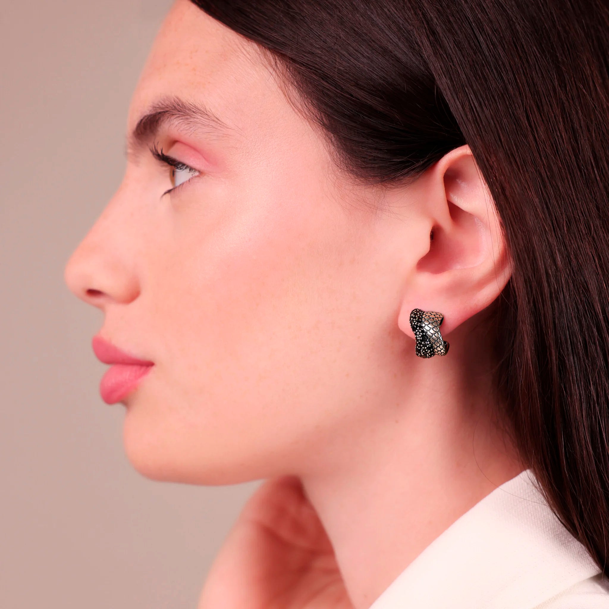 Orecchini a Onda Texture Sirena con Pavé